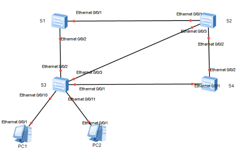 可以初步判定4台交换机中S3为根交换机,应为该交换机所有端口都为指定端口。