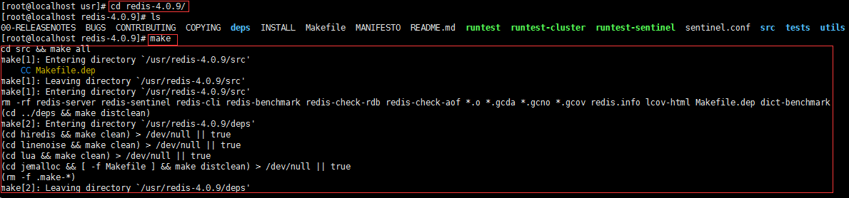 第三步:编译。进入redis源码目录。make