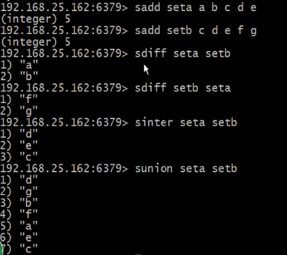 第一个set和第二个set做比较: sdiff key1 key2
