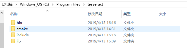 在 vs2017 上编译完成后,可以在 C 盘下发现一个 tesseract 安装文件夹,我的是在 C:\Program Files\tesseract: