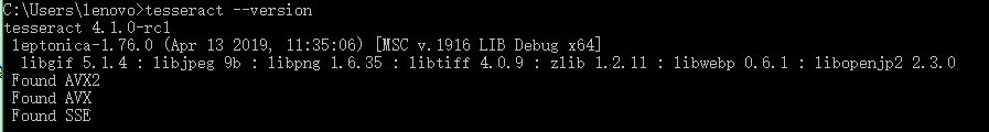 配置好这两步后,应该就可以在命令行使用 tesseract 命令了,可以简单测试一下 tesseract 是否安装成功,如下: