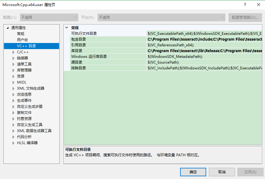 2)在 VC++ 目录中,选择库目录,编辑,分别添加这三个目录: