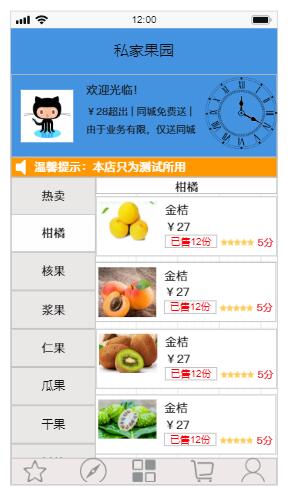 我们小程序主要功能是提供给用网上买水果,让用户在网络上浏览各种水果,但是水 果购物和其他网上购物一样,用户只能通过图片去挑选商品。