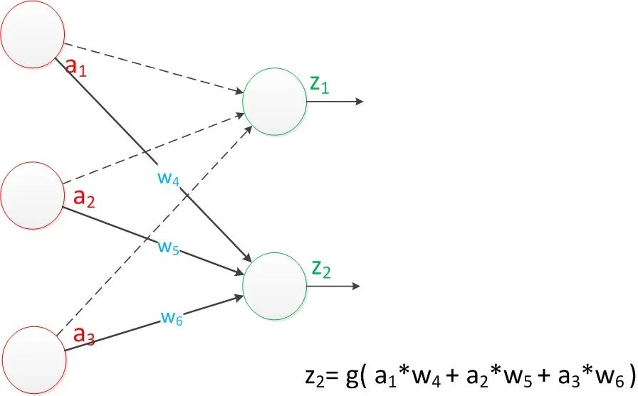 可以看到,z2的计算中除了三个新的权值:w4,w5,w6以外,其他与z1是一样的。