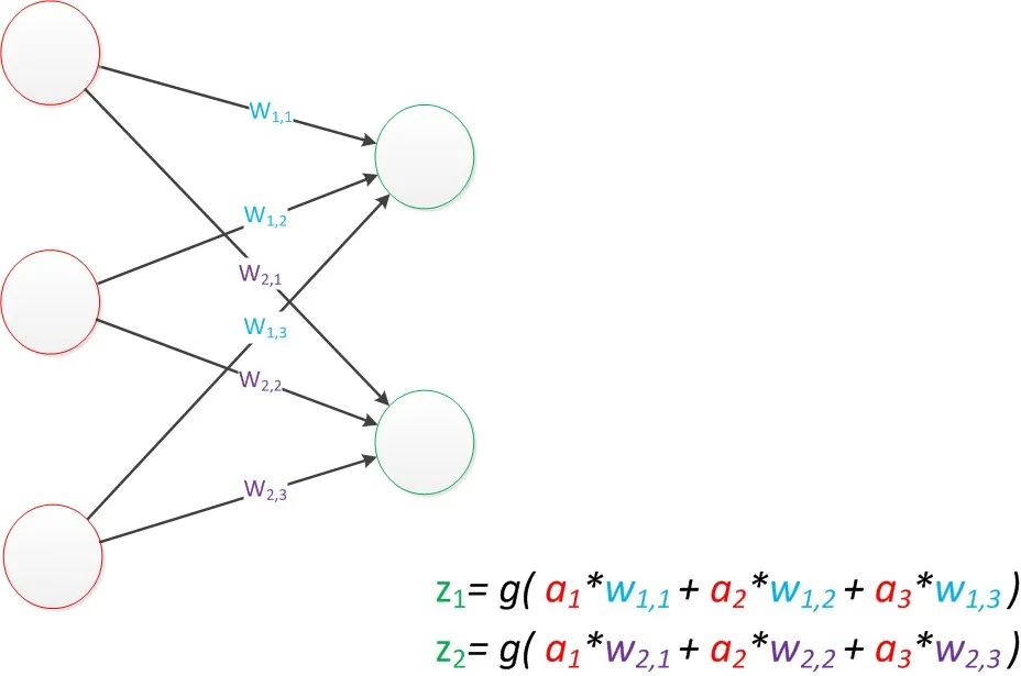 例如,输入的变量是[a1,a2,a3]T(代表由a1,a2,a3组成的列向量),用向量a来表示。方程的左边是[z1,z2]T,用向量z来表示。