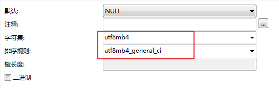android_id这个字段的编码格式改为:utf8mb4,如在Navicat中修改: