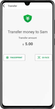 在手机应用内进行支付时,可以验证指纹或面容替支付密码完成支付,也可以同时使用支付密码和验证指纹或刷脸来确保支付安全,避免盗刷风险。