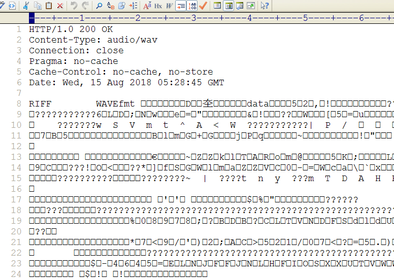 经过抓包,我发现访问http://192.168.1.8:8080 返回的是http头,后续就是riff wavefmt 搞过wav格式的都知道,这个wav头了