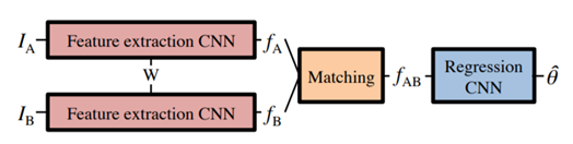 通过卷积神经网络CNN可以更好的学习与提取图像特征、通过语义分割获取初始匹配、然后对齐,图示如下: