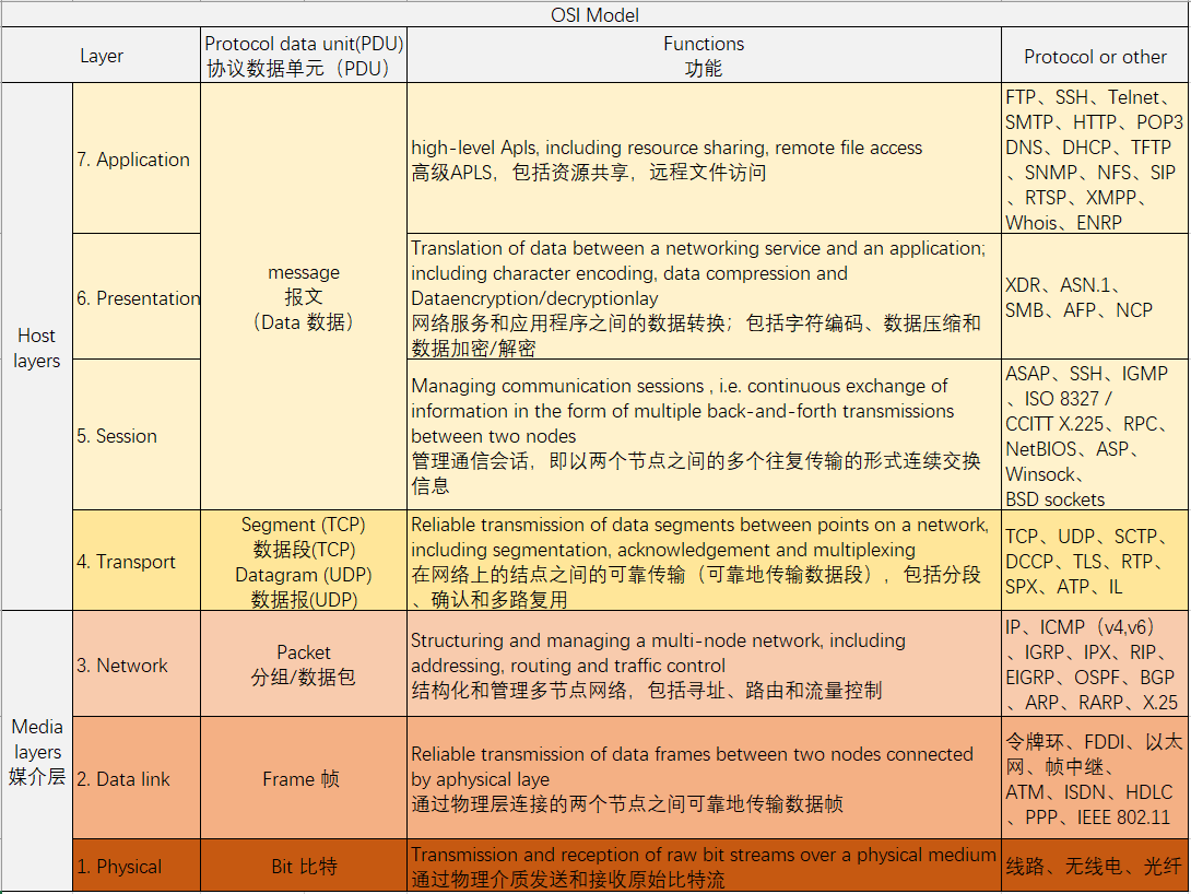 应用层直接和应用程序接口并提供常见的网络应用服务。应用层也向表示层发出请求。