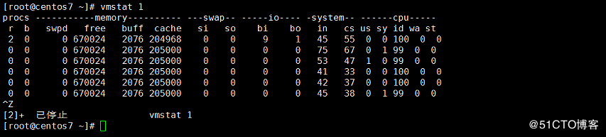 用vmstat 1来测试,#vmstat1命令:不停自动显示系统状态