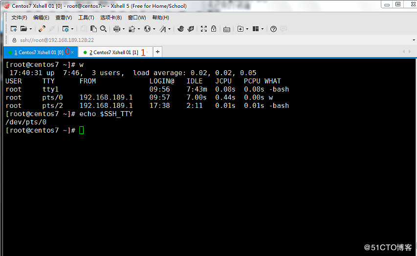 root pts/2 192.168.189.1 17:38 2:11 0.01s 0.01s -bash
