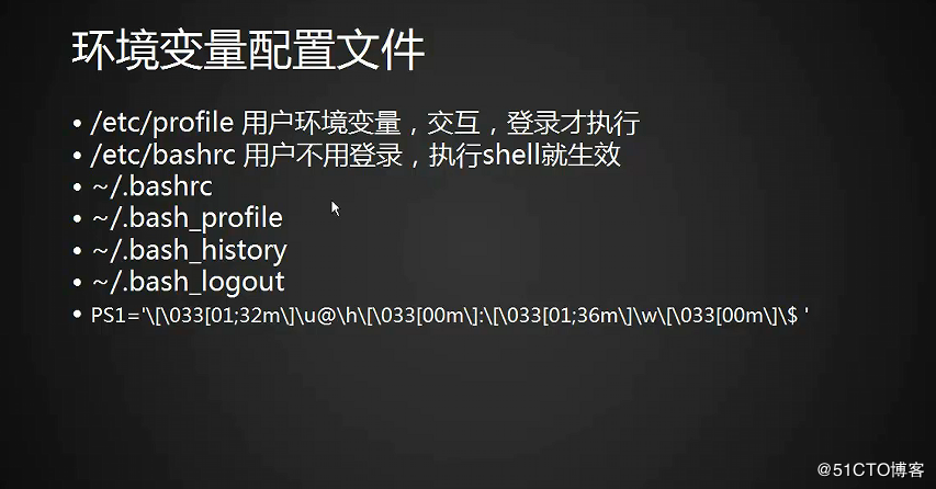 这个文件预设了几个重要的变量。例如PATH、USER、LOGNAME、MAIL、INPUTRC、HOSTNAME、HISTSIZE、umask等。