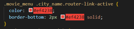同样的,在二级路由切换时,也可实现切换变色效果, 比如说,切换 “正在热映”,“即将上映”两个按钮的时候,实现切换变色带下划线的效果