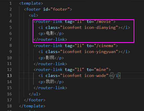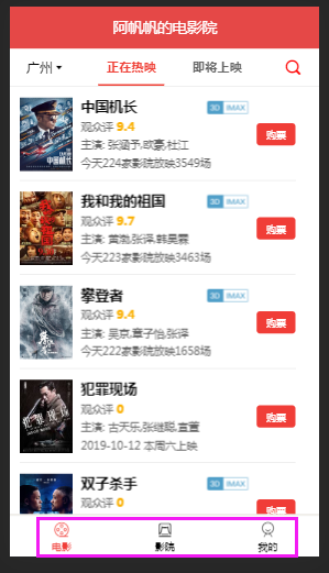 当我切换“电影” “影院” “我的” 三个路由选项时,文字由黑色变成红色