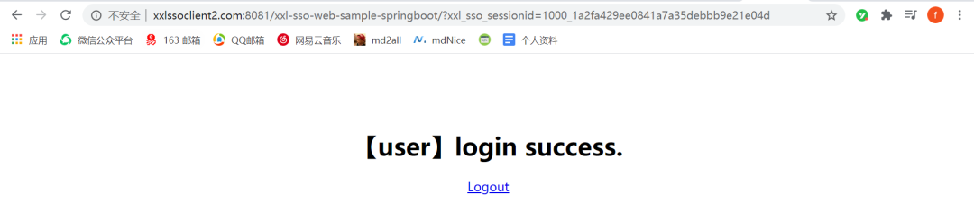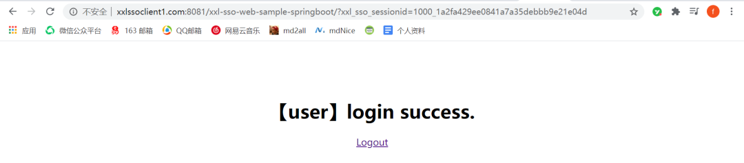 用户登录成功之后将会为用户分配 SSO SessionId 并 redirect 返回来源Client端应用,同时附带分配的 SSO SessionId。 -