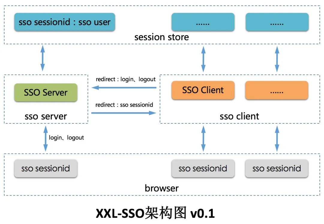 - xxl-sso-server:中央认证服务,支持集群;- xxl-sso-core:Client端依赖;- xxl-sso-samples:单点登陆Client端接入示例项目;- xxl-sso-web-sample-springboot:基于Cookie接入方式,供用户浏览器访问,springboot版本- xxl-sso-token-sample-springboot:基于Token接入方式,常用于无法使用Cookie的场景使用,如APP、Cookie被禁用等,springboot版本
