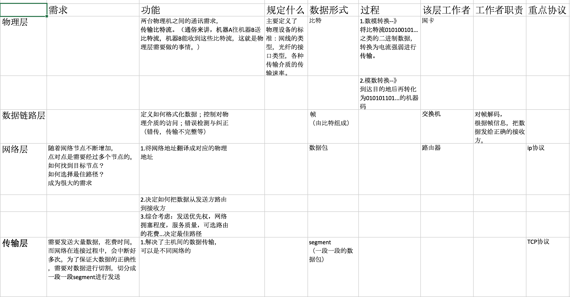 1.3.4 传输层:只在通信双方的节点上(比如计算机终端)进行处理,而无需在路由器上处理,传输层是OSI中最重要、最关键的一层,是唯一负责总体的数据传输和数据控制的一层;