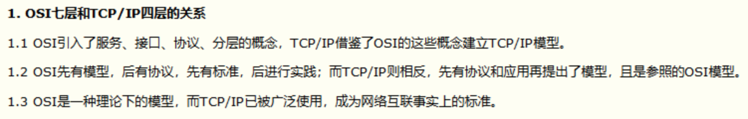 1.2 TCP/IP是一种实践类的模型,已成为行业标准。含义是:在使用ip进行通信时,所需要用到的协议群的统称。