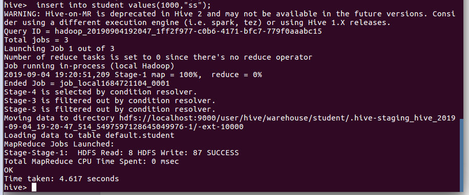 $ bin/hadoop fs -mkdir -p /user/hive/warehouse