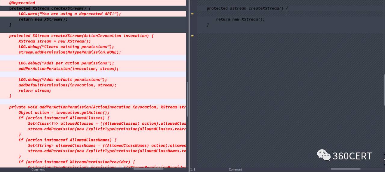 并且对原先有问题的`createXStream`进行重写,增加了校验,拒绝不安全的类执行