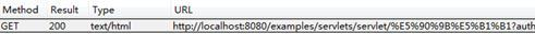 上图中 PathInfo 和 QueryString 出现了中文,当我们在浏览器中直接输入这个 URL 时,在浏览器端和服务端会如何编码和解析这个 URL 呢?为了验证浏览器是怎么编码 URL 的我们选择 FireFox 浏览器并通过 HTTPFox 插件观察我们请求的 URL 的实际的内容,以下是 URL:HTTP://localhost:8080/examples/servlets/servlet/ 君山 ?author= 君山在中文 FireFox3.6.12 的测试结果