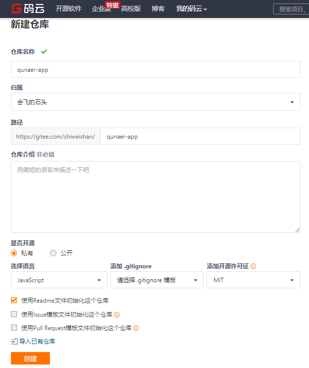 创建一个名为jd-finance的项目仓库,注意:最新版本的vue不支持创建大写名称的项目: