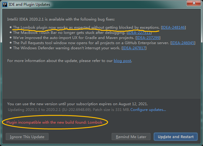 感受了一下,使用了 Lombok 插件的代码暂时没有遇到问题,不过升级还是需要谨慎,毕竟我只是轻度使用用户。