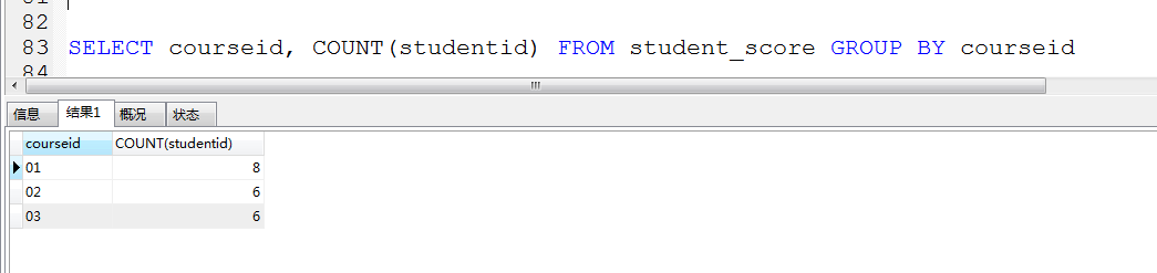SELECT courseid, COUNT(studentid) FROM student_score GROUP BY courseid
