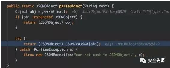 因此,通过以上代码可以看出调用parseObject 函数会调用getattr()方法。