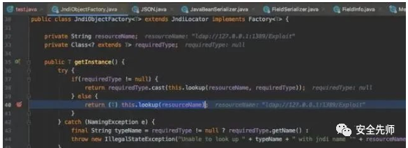 假若lookup函数中的参数攻击者可控,便可以指向攻击者的服务器,即:可实现JNDI注入实现任意代码执行。