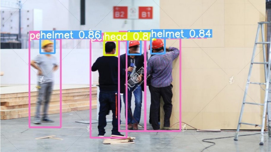该项目是使用 YOLOv5 v2.x 来训练在智能工地安全领域中头盔目标检测的应用,先来一波演示!