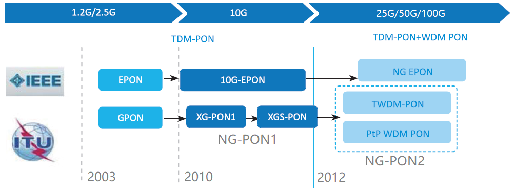 对于标准组织来说,10G PON并不是PON技术的终点,25G/50G/100G PON早已经被提上了议事日程。
