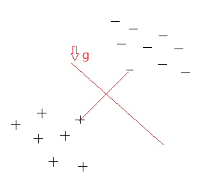 这条线g就是SVM认为的分类两个样本点的最好边界线。