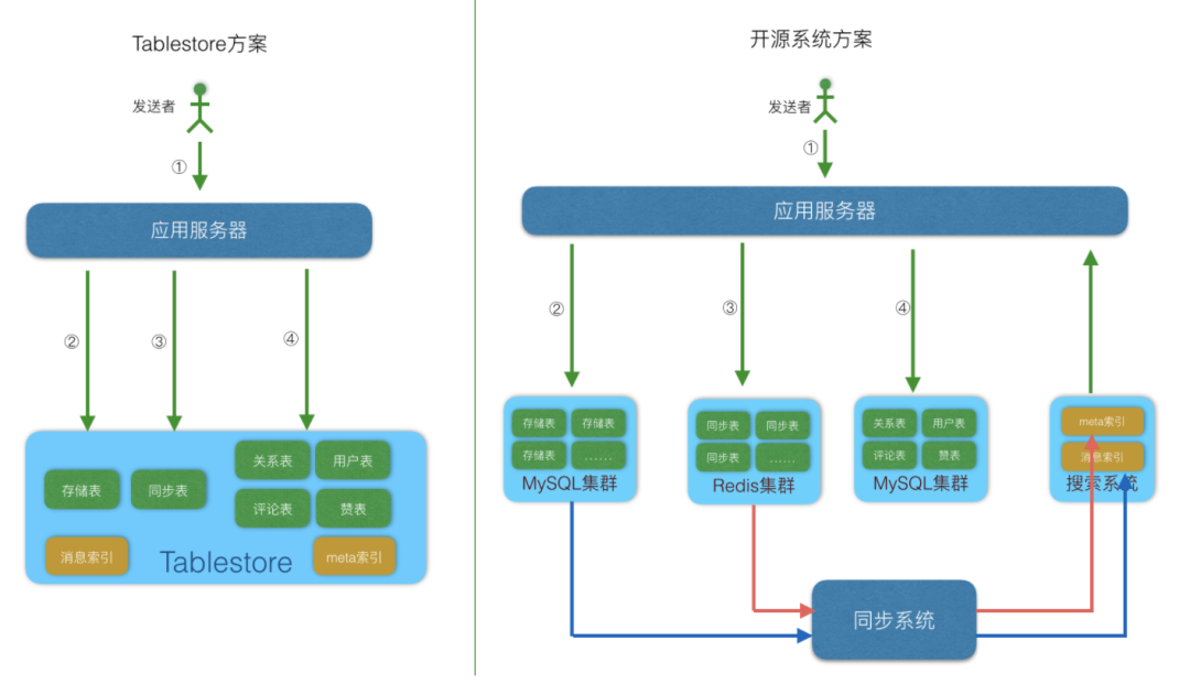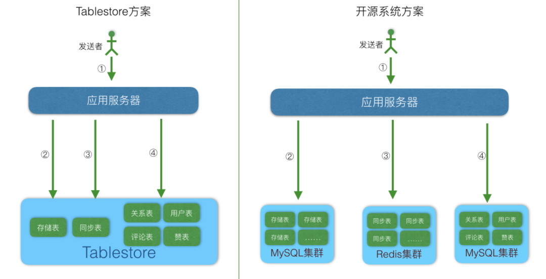 Tablestore单系统:只使用Tablestore单个系统就能解决上述的所有问题,这时候肯定有人要问?你是不是在吹牛?这里不是吹牛,Tablestore在三年前就已经开始重视Feed流类型业务,之前也发表过多篇文章介绍,功能上也在专门为Feed流系统特别定制设计,所以到今天,只使用Tablestore一款产品,是可以满足上述需求的。选择Tablestore做Feed流系统的用户具有以下一些特征: -