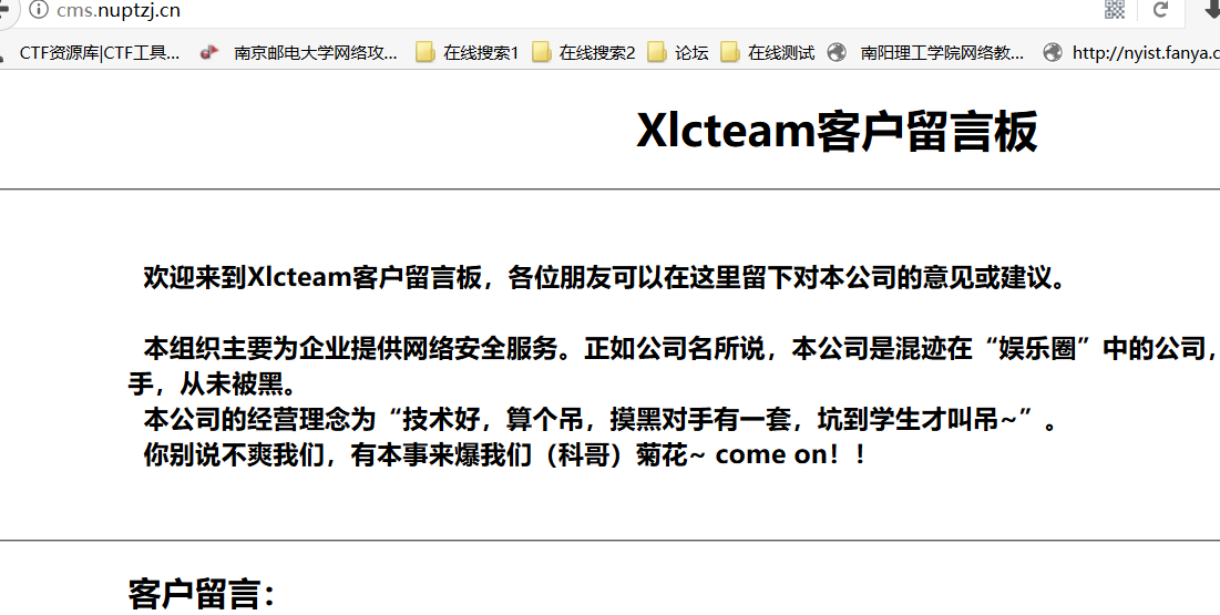 ----------南京邮电大学ctf : http://cms.nuptzj.cn/