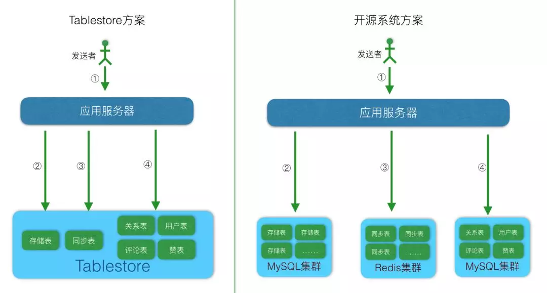 Tablestore单系统:只使用Tablestore单个系统就能解决上述的所有问题,这时候肯定有人要问?你是不是在吹牛?这里不是吹牛,Tablestore在三年前就已经开始重视Feed流类型业务,之前也发表过多篇文章介绍,功能上也在专门为Feed流系统特别定制设计,所以到今天,只使用Tablestore一款产品,是可以满足上述需求的。选择Tablestore做Feed流系统的用户具有以下一些特征: