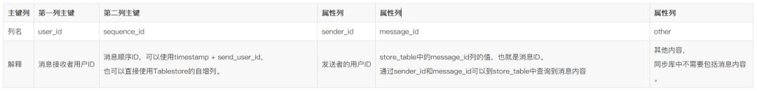如果选择了Tablestore,那么同步库表设计结构如下: