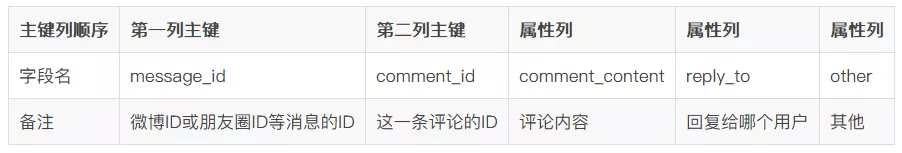 如果选择了Tablestore,那么“评论表”设计结构如下: