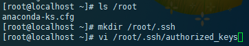 vi /root/.ssh/authorized_keys #编辑时自动创建,复制公钥到此文件