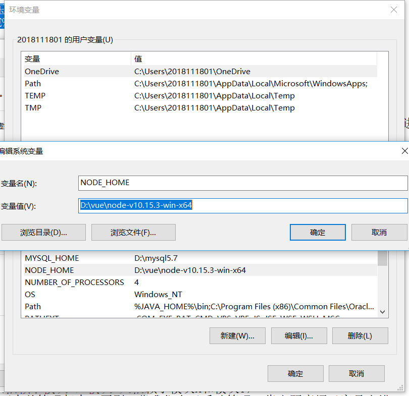 NODE_HOME:配置的是nodeJS解压的根路径D:\initPath\node-v10.15.3-win-x64