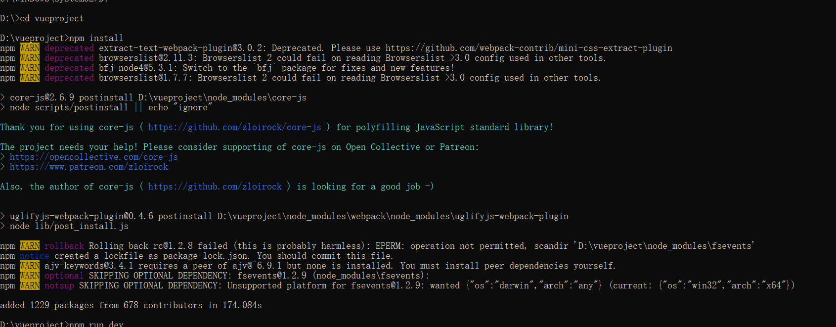 6、在解压的项目中是没有node_modules的,在工程的根目录下需要通过npm install进行再次依赖下载(package.json)
