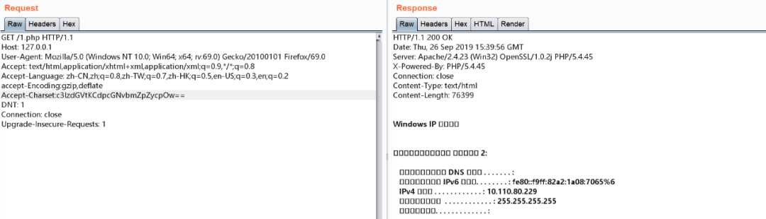 然后随意访问一个php文件,拦截数据包,添加如下的请求头字段: