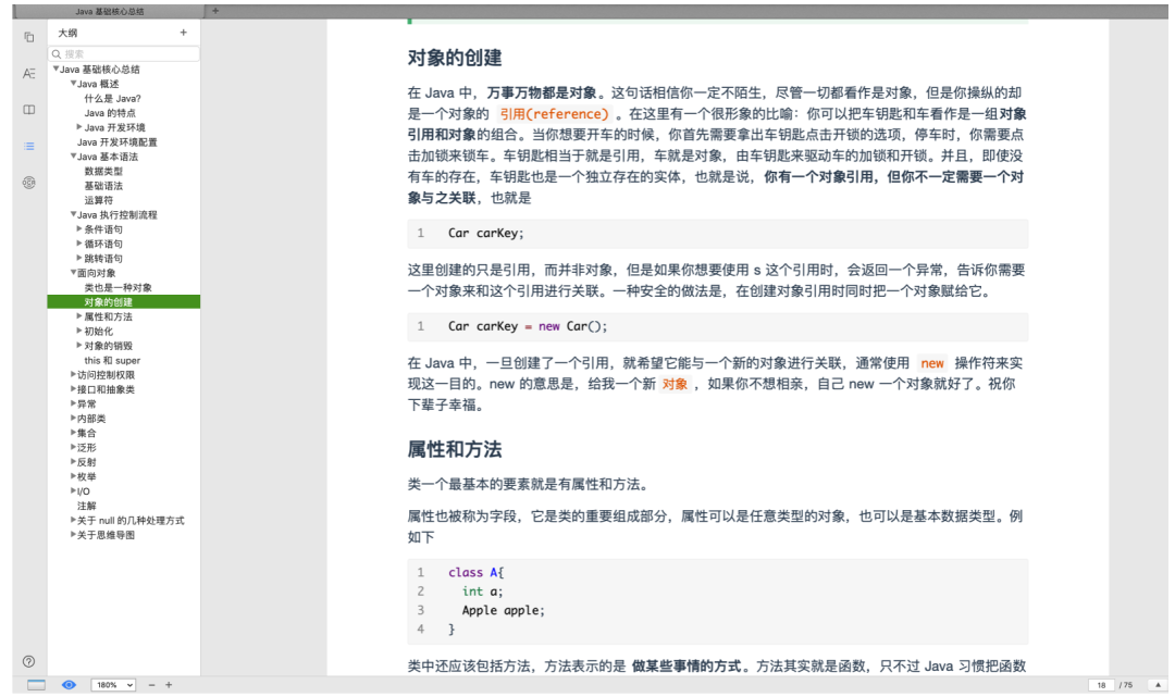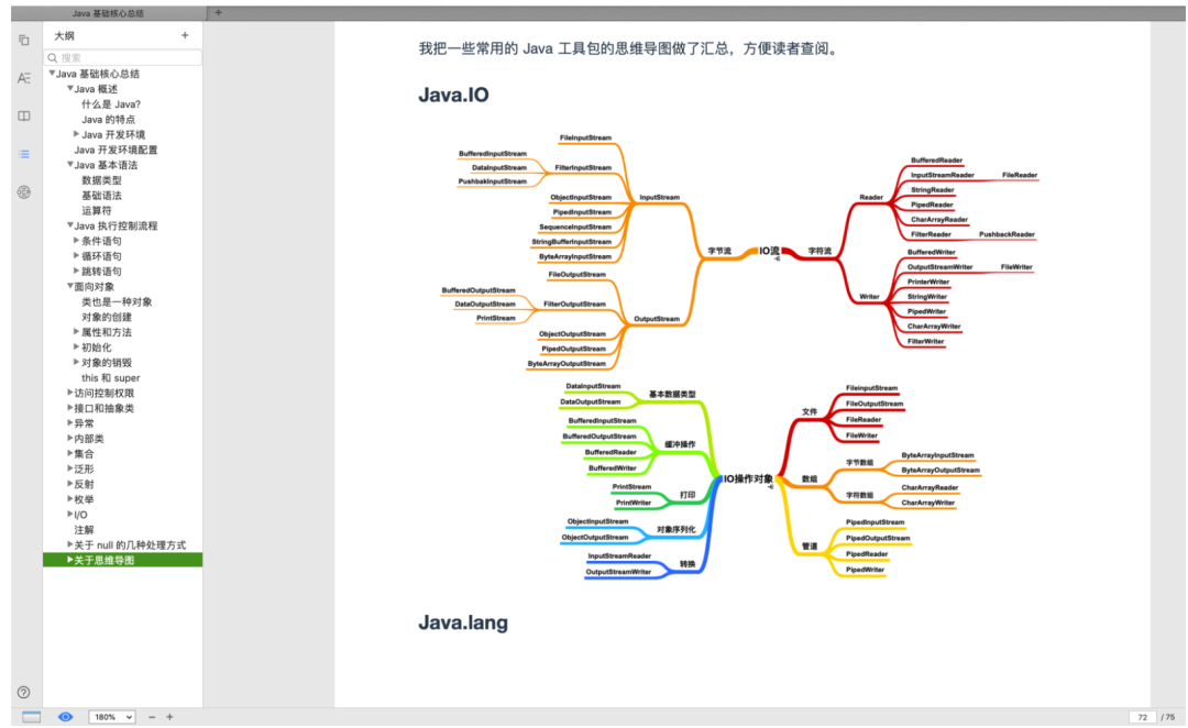 一共是 75 页,这 75 页可是我呕心沥血的大作啊!!!我女友和我说她老板买一份这种 PDF 的版权要几万块。现在 cxuan 免费分享出来,后台回复 java基础 即可领取。