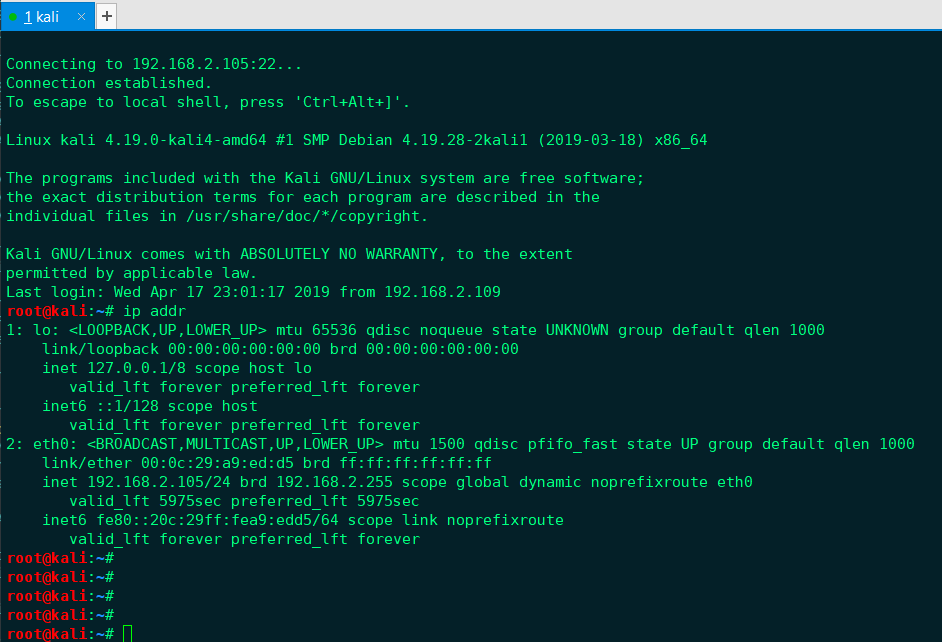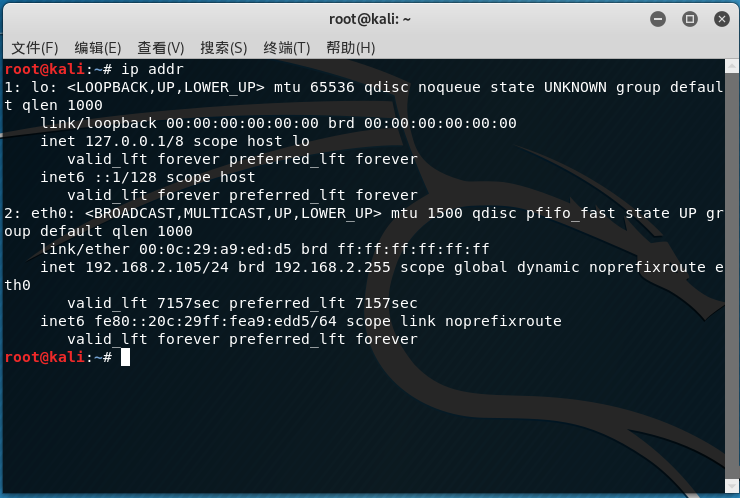 首先查看kali系统的IP地址