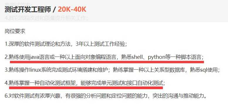 不过,现在大多测试招聘把对“具备自动化技术”的测试也冠以“测试开发”的title。