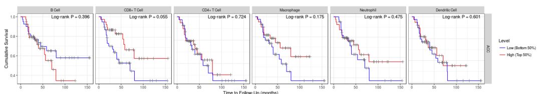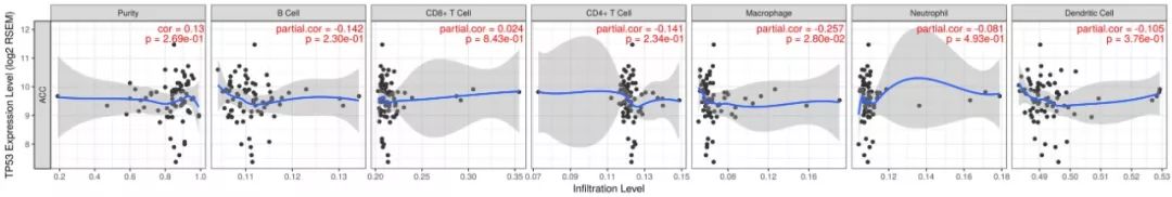 查看TCGA不同肿瘤中,免疫细胞以及肿瘤纯度与基因表达量的相关性,结果示意如下