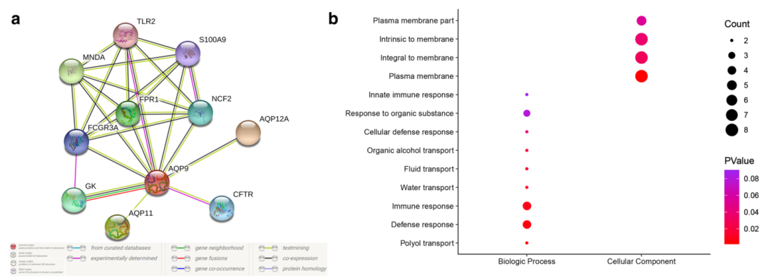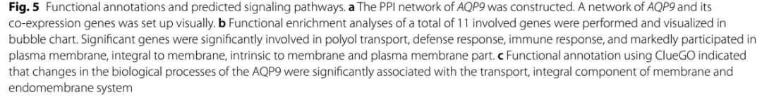 功能注释和信号通路分析检测AQP9在肿瘤发生、发展和预测的价值。这里是分子机制的探讨层次。